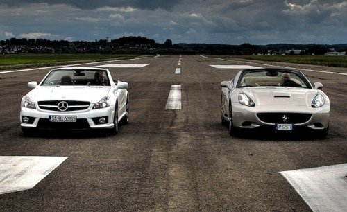 法拉利终于按捺不住了,归咎于市场因素,推出FR前置后驱跑车对于一向注重高性能跑车血统的法拉利而言显得迫不得已。加利福尼亚的诞生预示着法拉利一种新的尝试,尽管加装了重量不菲的机械车顶装置,它依然非常“超级”,于是我们不得不邀请另一位和它极为接近的悍将与之比拼,这位战将来自德意志,名字叫奔驰SL(报价 参数 图片 论坛)63AMG。