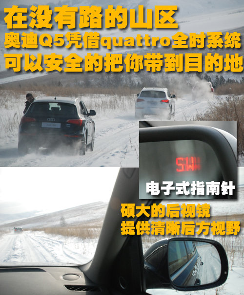 1月份的内蒙古呼伦贝尔平均气温在零下30度左右,冰天雪地的环境正是考验奥迪quattro全时四驱系统的绝佳场地。此次活动试驾的车型均搭载奥迪引以为傲的quattro全时四驱系统,并且我们所驾驶的车型均为国产,全新的Q5-SUV以及我们在熟悉不过了的奥迪新A6L、A4L让这次特殊的体验更加有意义,也非常的“亲民”。