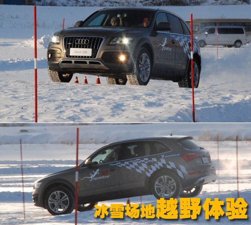 奥迪公司的工作人员精心的设计了多个体验试驾环节,让我们能充分的体验奥迪quattro全时四驱系统在冰雪路面上的优势。因为是在冰雪环境下驾驶,为了保持安全以及操控的稳定性,所有的试驾车辆均换上大花纹的米其林X ICE冬季轮胎,让大家体会了冬季轮胎在冰雪路面上良好的附着力。