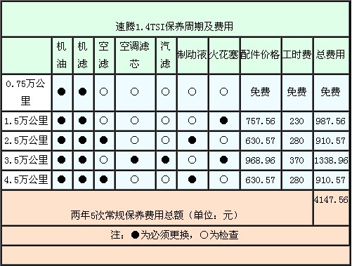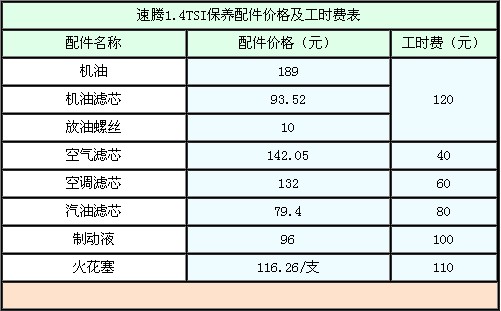 2.1、速腾1.4TSI常规保养费用