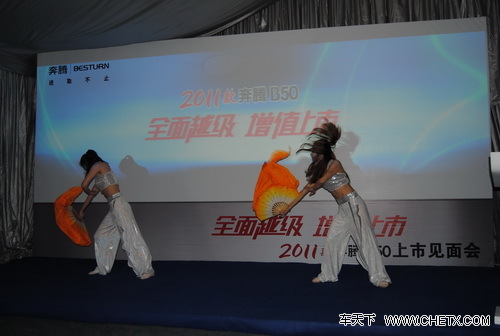 16个写着2011款奔腾B50升级功能的气球衬托着耀目的2011款奔腾B50,其在外观、内饰与配置方面进行了多项优化设计,但依然沿袭了奔腾家族轿跑车底盘、3H高安全车身、四轮独立悬挂系统等同级市场优势明显的产品特征,而奔腾B50长达2675mm轴距的"越级"尺寸更是成为同级车中的"佼佼者"。