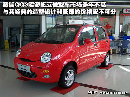 奇瑞QQ(报价 参数 图片 论坛)作为一款自主研发的经典车型,自然就有其独特的地方。外观可爱就是最直接的表现,前后圆形车灯组、笑脸型进气格栅等都是奇瑞QQ标志性的特征。车身造型设计时尚新颖、简洁流畅,高配车型还增加了铝合金轮毂、天窗、后扰流板、后窗雨刷等实用配置,为使用者提供了更多的便利,也提供了更多选择的余地。