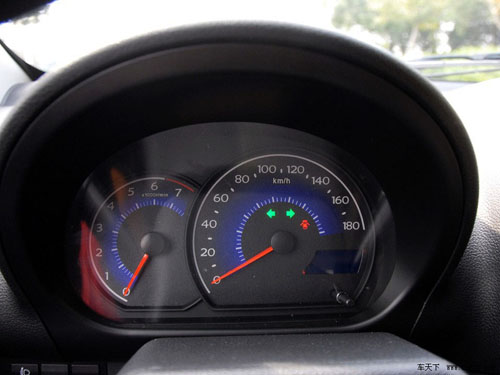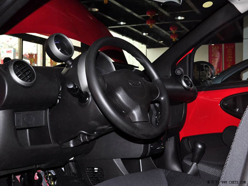 内饰方面,比亚迪F0的内饰整体设计比较简单,而且圆形也是整个内饰的主元素,不论是硕大的仪表盘设计、转速表、空调出风口还是整个内饰的旋钮设计,都充斥着圆形的元素。黑色和银色的双色搭配也让整车的内饰显得非常年轻,宽大的副驾驶手套箱部分也能起到很好的储物作用,另外就是F0的整体内饰的用料比较一般,塑料件给人的感觉比较明显,这点来说比起瑞麒M1要稍差一些。