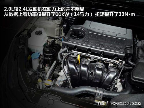这两款发动机在动力上的输出相差不大,2.4L发动机在功率上仅增加了14马力,扭矩上增加了33N·m。从排量增加0.4L来看,这样的最终表现并不对等,并且同样使用在1.5吨左右的车身上,实际表现就更微乎其微了。