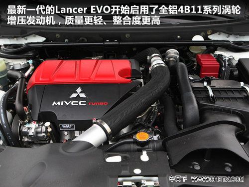 曾经带给三菱汽车无尽荣誉的“红头”发动机,多年以来一直是汽车运动爱好者们梦寐以求的神器,2.0T涡轮增压发动机绝对是令人心潮澎湃的源泉。最新一代的LancerEVO开始启用了全铝4B11系列涡轮增压发动机,质量更轻、整合度更高、并且装配了MIVEC气门,电子控制系统的4B11与老款的4G63相比,在技术上有更大潜力。