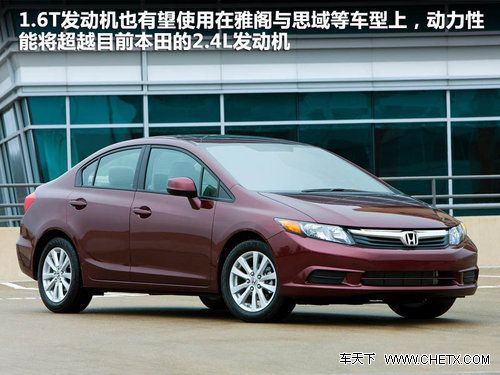 即将在明年引入国内的本田CR-Z[综述图片论坛]车型所搭载1.6T发动机,也有望使用在雅阁与思域等车型上,动力性能将超越目前本田雅阁的2.4L发动机。本田这款新1.6T发动机共分为低功率版和高功率版,动力分别达到110Kw和150Kw。与国内销售的雅阁和思域相比,高功率版的动力已超越雅阁的2.4L车型,而低功率版的动力也领先于思域所搭载的1.8L发动机。