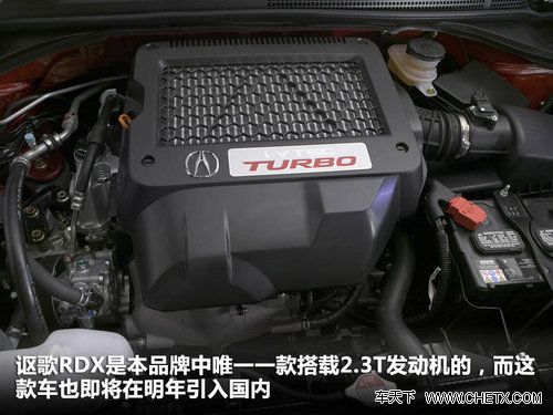 讴歌RDX(报价 参数 图片 论坛)是目前讴歌全系中唯一装配涡轮增压发动机的车型,而且自2006年上市以来一直就只有这一款2.3L四缸涡轮增压发动机,实际表现我们目前无从得知,但看数据也能了解,这台发动机的升功率已经破百,实力可算相当强劲的。而国外的媒体也已经测试过老款的RDX,其从静止加速到100km/h仅用6.5秒,看到这应该有人更加希望它能早些进入国内了。