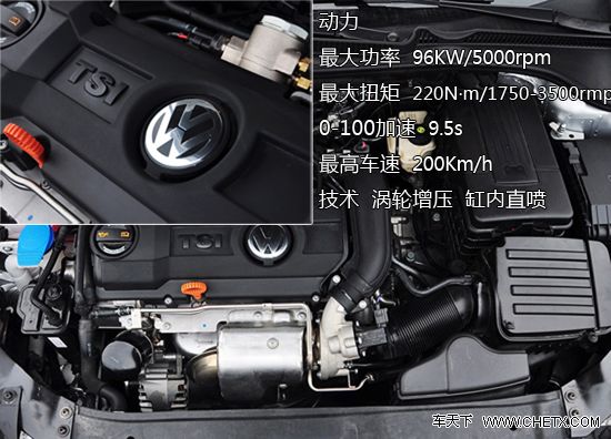 搭载在高尔夫(报价 参数 图片 论坛)6上的这台1.4升涡轮增压发动机的表现又如何?这款发动机的最大功率96Kw/5000rpm,最大扭矩220Nm/1750-3500rpm,与之相匹配的则是5挡手动和7挡双离合变速箱,能够在9.6内完成0-100公里的加速,这在小排量车型中的成绩是非常出色的。