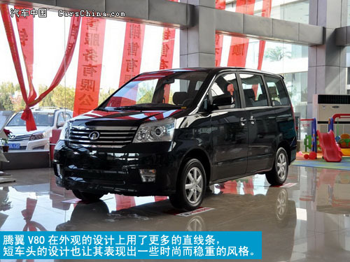 大家对腾翼V80可能还有些陌生,其实它就是之前的嘉誉(报价 参数 图片 论坛),只是在名称上进行了统一。腾翼V80在外观的设计上更多的使用了直线条,短车头的设计让它表现出一些时尚而稳重的风格。腾翼V80后门为侧拉式开启,这种滑动式车门也更加方便乘客上下车,也减少了开门时出现小磕碰的现象。车尾的造型很平直,车灯采用了竖直排列方式,整体比例感觉非常和谐。