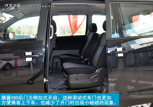 宽大的乘坐空间是消费者选择MPV车型的主要目的,腾翼V80在这方面的表现非常突出。首先从座位的数量上,您可以根据您的需求选择5座、6座和7座三种方案。但从座位的数量上我比较偏向于6座的设计,因为6座车型的第二排采用了两个独立式座椅,舒适程度也会较5座的通体设计更好,而且6个座位的使用完全可以满足我们大部分的日常使用了,如果是7座的话,后面两排都是整体式设计,在车内活动的空间也不如6座灵活。
