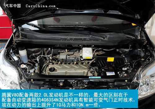 腾翼V80提供两款2.0L和一款2.4L发动机,在动力的配备上两款2.0L发动机是不一样的,配备自动挡的车型使用了动力稍强一些的发动机,相信这也是为了减少自动变速箱在日常使用时动力上的损失而设计的。这两台2.0L发动机最大的区别在于配备自动变速箱的4G63S4N发动机具有智能可变气门正时技术,故在动力的输出上提升了10马力和10N.m一些。与2.4L发动机配合的也只有自动变速箱一款,对于MPV车型更加舒适的乘坐和轻松的驾驶感受更加重要,所以放弃了手动变速箱的选择也在情理之中。