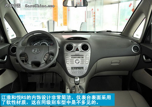 江淮和悦RS的内饰设计非常简洁,没有任何复杂的结构,中控面板的设计似乎借鉴了猫头鹰的设计,仪表台表面采用了软性材质,在同级别车型中是不多见的。软性材质的使用既提升了档次,又增加了发生事故时的安全性。
