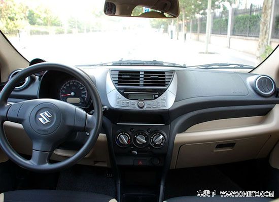 新奥拓内饰采用温馨的双色调搭配,设计方面更倾向于居家,而更多的圆形小组件使车内气氛很活跃。仪表采用分体式设计,方向盘采用运动的三幅式设计,虽然采用塑胶材质,但握感相当不错。音响面板、中控台、仪表板、灯光开关等,各部件的接缝十分均匀且没有任何毛刺的出现。