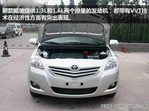 威驰提供了1.3L和1.6L两款自然吸气发动机,1.3L发动机型号为2NZ-FE,最大功率63kW(86马力)、最大扭矩121Nm,搭配5挡手动和4挡自动两种变速器,1.6L发动机型号为1ZR-FE,最大功率87kW(118马力),最大扭矩150Nm,同样搭配5挡手动和4挡自动两种变速器。其中,1.3L发动机使用VVT-i智能正时可变气门控制系统、而1.6L发动机与卡罗拉发动机相同,使用双VVT-i智能正时可变气门控制系统,技术领先性很高,只不过在功率上相比卡罗拉要低3kW。