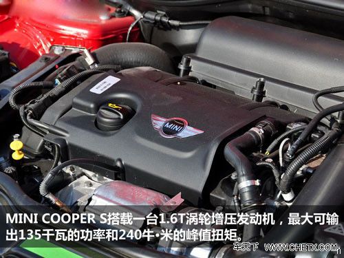 MINICooperS使用的这款1.6L增压发动机是宝马集团和PSA共同合作开发的,在标致等车型也曾经出现,它能够提供184Ps的最大功率和240Nm的最大扭矩,使用超增压模式,就是当驾驶者将油门踩到底的时候,涡轮叶片的角度会发生变化,增加发动机的进气量,可以短时间内将扭矩提高到260Nm。