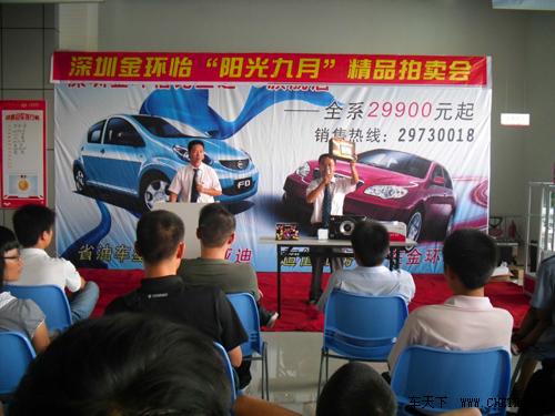 [导读] 经过近两个小时的激烈竞拍,9月26日下午深圳金环怡精品拍卖会以3万元收官! 据悉此次深圳金环怡精品拍卖会是为了庆祝金环怡4S店高标准通过比亚迪汽车销售有限公司验收,同时也是为了迎接国庆、中秋双节而举办的一次感恩回馈客户活动,参拍所有精品最低1元起拍,拍卖会上共拍出比亚迪原装精品配件100余件,包括:F0/F3R专车专用版DVD、低音炮、便携式GPS导航系统、全车大小包围、炫酷尾翼、米奇套装、胎龄轮毂、发动机护板等大小整车装饰精品。