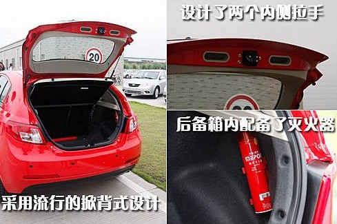 作为一款年轻化的车型,帝豪EC718-RV尾门采用掀背式设计,后备箱内侧上沿设计了两个内侧拉手,而且后备箱内部配备了轻水灭火器。帝豪EC718-RV配备了电动防夹式天窗,提高了整车的舒适性,相信会受到很多年轻消费者的喜爱。