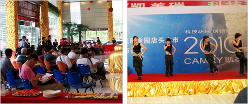 发布会现场,据销售经理介绍车主们不仅了解到了2010款凯美瑞在科技、豪华和性价比方面的三大突破,同时也欣赏到了兆方店自编、自导、自演的精彩独特“绿色环保”庆典节目--模特走秀、歌舞表演……使车主在享受兆方店优质服务的同时,领略到兆方人极具活力、人性的企业文化。正如现场产生的首位新款凯美瑞车主所说:选择凯美瑞,选择兆方店,兆方店,值得信赖!