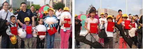 新力达本田的这次青少年风筝比赛共设10个奖项,其中一等奖2名,二等奖3名,三等奖5名;按绘画比赛及风筝放飞2个环节的分数高至低排名。在工作人员统分的时候,本人有幸看到了风筝协会会员具国际水准的电动风筝花样表演;此后,参赛选手们分别获得了喜洋洋玩具、电动划板及遥控汽车等礼品。