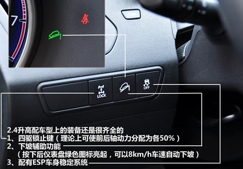 既然是一款SUV车型,其越野性能就会受到格外的关注。由于其离地间隙比较高,因此在通过性能上还是可以让人满足的。而在四驱系统上,官方介绍它采用了多片离合器式的限滑差速器,而这套四驱系统也是很多城市SUV的标准配置。不过由于没有进行过针对它的四驱形式测试,因此还不能最终对这款车的四驱性能进行判断。