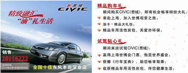 深业东本即将盛装亮相,购思域赢上海世博游