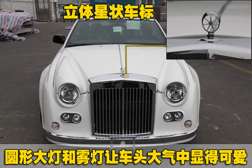 从外观的风格上,它有一些我们比较熟悉的劳斯莱斯幻影(报价 参数 图片 论坛)车型的味道。前脸电镀的巨型直瀑式中网相当大气,圆形的大灯和雾灯都体现出复古的设计理念,整体的大气中又表现出一丝可爱和乖巧。