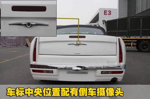 尾部长条状的尾灯、雾灯、高位刹车灯形状都一样,值得注意的是双翼式的车标中央配有一个倒车摄像头,这样的配备在豪华车上已经很平常了。电镀的后保险杠相比一般的豪华车风格更有个性。