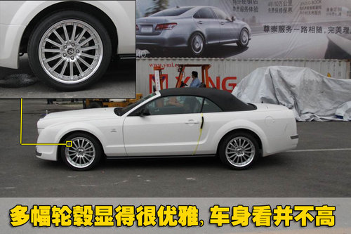 从侧身的腰线可以看出,GALUECONVERTIBLE的车身并不算高,从车头底部向上弧形线条转而成为直线直达尾部,设计风格可谓简洁。多轮毂的造型风格让车身显得极为优雅,待软顶放下后相信会有更多的惊喜。