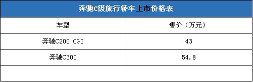 2010年6月1日,梅赛德斯-奔驰(中国)汽车销售有限公司今天宣布,旗下另外一款重磅车型C级旅行轿车于即日起正式登陆中国,从而开创了兼顾日常驾驶和假期长途旅行的全新豪华旅行轿车细分市场。两款车型C200CGI和C300售价分别为人民币430,000元(报价 参数 图片 论坛)和人民币548,000元。C级旅行轿车将全新时尚外观、超大车内实用空间、灵动的操控和极致的安全完美融合,是一款既善于城市道路驰骋,又适合长途休闲旅行的先锋时尚座驾。