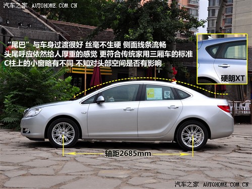 GT侧面造型流畅,多出一厢后车身比例依然协调,2685mm的轴距没有改变;三厢的设计在车顶的收尾处与英朗XT有所不同,看到C柱上三角窗形状的变化,我们在想后排乘客头顶的空间会不会有问题;英朗GT侧面看上去更符合人们对家用车的审美评定。
