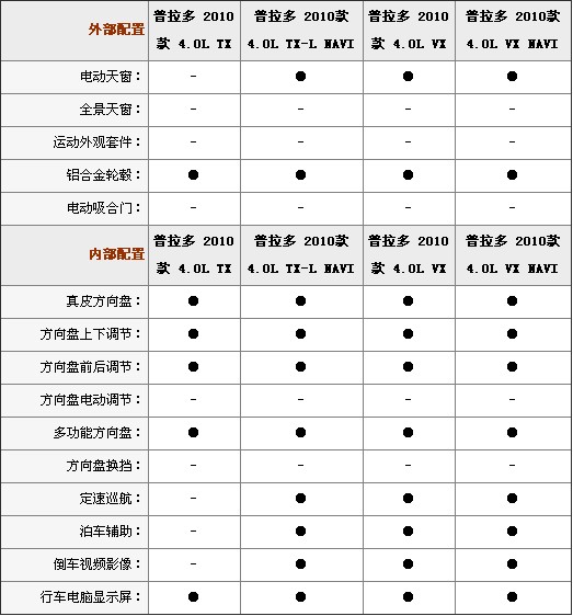 之前,我们曾经曝光过国产一汽丰田普拉多6月22日上市的消息,预计售价为55-70万元(报价 参数 图片 论坛)。近日,我们提前曝光了国产普拉多的参数配置,此次国产普拉多一共有5款车型,分别为TX、TX-L、TX-LNAVI、VX、VXNAVI五种。