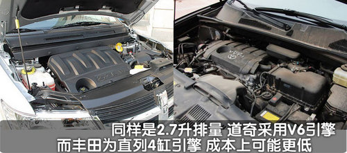 两款车型都使用了2.7升的自然进气引擎,但是丰田为汉兰达匹配的是2.7升的直列4缸发动机,而道奇为酷威配备的却是V型6缸发动机。而从机械原理上来说,V型6缸发动机的运转稳定性要比直列4缸引擎更好一些。
