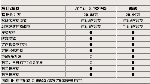 30万元(报价 参数 图片 论坛)的价位如果想买一款更多功能的车型可能不太现实,以往这个价位上仅仅能够买到一台合资品牌SUV或是一款不错的MPV。但是广汽丰田的汉兰达(报价 参数 图片 论坛)以及道奇的进口车型酷威(报价 参数 图片 论坛)的出现让潜在消费者的选择多了起来,那么下面我们就来看看这两款车型各自的特点。