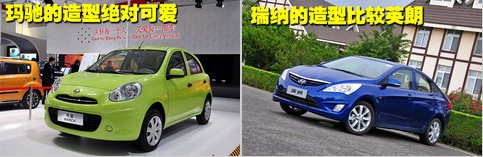 随着城市交通的日益拥堵和政府的政策支持,中国对微型车的需求正在不断增大,而众多合资品牌也纷纷开始在华投产紧凑型车。东风日产将于8月21日正式推出全新紧凑型轿车玛驰(报价 参数 图片 论坛),玛驰将搭载1.5L发动机,预计售价7-10万(报价 参数 图片 论坛)。同时就在玛驰上市后的第三天,北京现代也将推出一款紧凑型轿车瑞纳(报价 参数 图片 论坛),瑞纳将分别搭载1.4L和1.6L发动机,同时售价也在7-10万元这个区间。这两款车型都可以算是东风日产和北京现代的重头车型,那么这两款车型究竟都分别有什么特点和过人之处呢?下面我们将通过它们的数据参数为您进行解答。