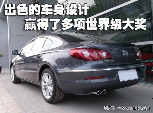 国产CC的外观突破了大众汽车一贯的设计风格,身段优美、曲线和谐、动感实足,是名副其实的风之精灵,堪称大众汽车迄今设计最美的车型之一。借用一句话形容就是:夺目外观造就时尚典范!