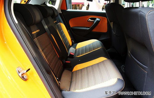 新一代CrossPolo的内饰与第五代Polo基本上没有区别,整体上仍保持了大众一贯的分区明了、简洁易懂的风格。方向盘采用了与高尔夫(报价 参数 图片 论坛)6上一样的新式三辐方向盘,仪表盘采用了传统的平面造型,脚踏板采用了更动感的金属踏板。与现款CrossPolo一样,新一代CROSSPOLO的座椅采用了与车身同色的双色交叉搭配的样式,并且采用运动味道浓厚的网眼织物材质包裹,椅背处镶缝上了专属的CrossPolo字样。