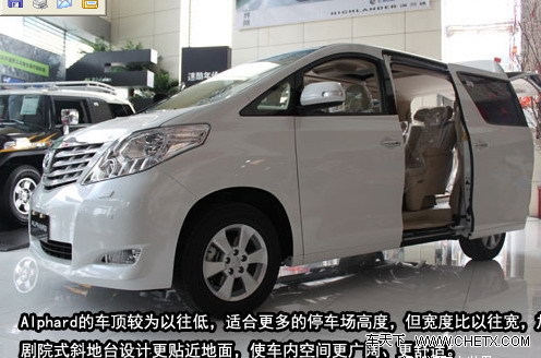 Alphard是丰田的高端MPV车型,因其宽敞舒适的内部空间和豪华丰富的配置而受到了很多港台明星的喜爱,经常以明星保姆车的姿态出现在各大娱乐媒体上,有“明星保姆车”之称,同时Alphard也是一些私企老板以及一些喜欢休闲度假的人士的新宠,有着“陆上行宫”、“头等舱”等等的美誉。