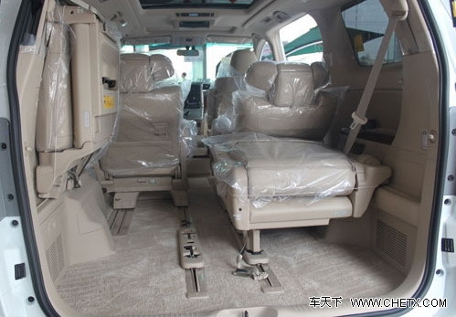 内饰与配置方面,车厢内饰提供了米色与黑色两种内装颜色供用户选择。高配型号还配备了电动控制的侧滑门、中置式大型电动天窗、内置GPS导航及硬盘的多媒体系统、6碟DVD/CD影音系统带8喇叭、自动泊车系统、前后泊车雷达,以及后座专属的影音系统。而前座的主动头枕及方向盘辅助稳定控制S-VSC、超音波雷达防撞安全系统、以及遍布全车11个安全气囊更是让车内乘客享受到同级别最高的安全设计。