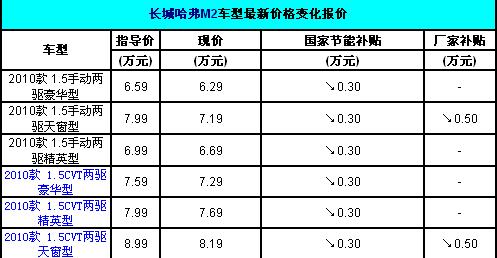 [车天下 深圳行情] 从深圳长城哈弗M2汽车销售4S店处获悉,10月份购长城哈弗M2天窗版车型除了可以享受到国家节能补贴3000元(报价 参数 图片 论坛)现金,另外获得5000元厂家补贴优惠,目前长城哈弗M2展厅内部分车型有现车销售。