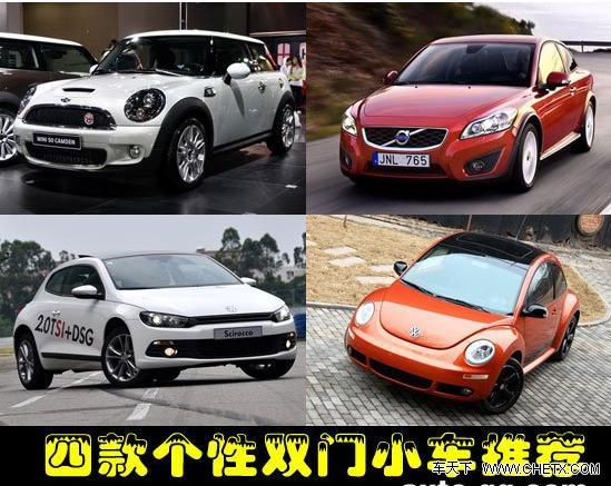 汽车是人的一面镜子,什么样的车代表什么样的性格的人。在如今这个四门轿车已经泛滥到让人有些审美疲劳的时候,两门小车似乎更能吸引周围人的眼球,同时也更能彰显年轻一族的个性,今天我们就为大家带来甲壳虫(报价 参数 图片 论坛)、MINI(报价 参数 图片 论坛)Cooper、沃尔沃C30、尚酷四款两门时尚小车,看看哪款与个性的你匹配。