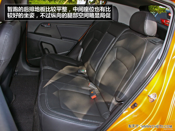 智跑后排的地板比较平整,这就使得即使后排坐满三个人,中间乘客的坐姿也不会过于难受,不过中间座位没有配备头枕,算是一个小小的遗憾。智跑后排座椅的包裹性不错,不过和同级别的SUV相比,后排的纵向腿部空间并没有什么优势,不过后排的头部空间还算不错。