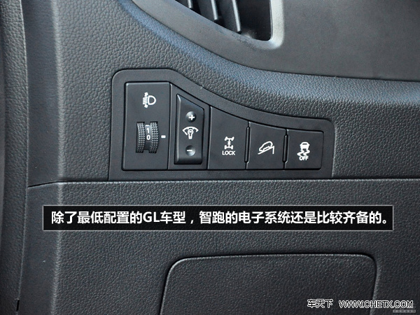 ABS和EBD的这两个和制动有关的电子辅助系统在智跑上是标准配置。同时作为标准配置的还有电子助力转向(MSPS)系统。和液压助力系统相比电子助力转向在极限状态下表现更稳定,而日常行驶中,响应也更精确。而ECO节能驾驶提示系统则配置了全系的自动挡车型,提高了日常行驶的经济性。而和行驶安全息息相关的车辆动态控制系统(VDC)和提高驾驶便利性的下坡辅助系统(DBC)则没有出现在最低配GL的配置单中。