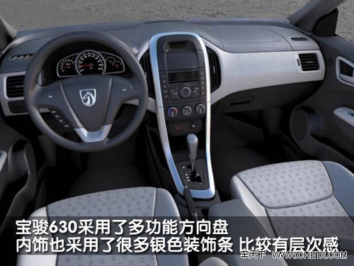 宝骏630的内饰采用黑白灰三种色调搭配,而且在仪表台、门把手、控制面板、座椅面料等处进行局部装饰,让车内空间看起来更有扩张感和层次感。从上图中可以看到,宝骏630在中控台使用了厚重的镀铬包边饰条,但成本较高的镀铬材料很可能在量产版上缩水,量产车型最终可能将以金属拉丝饰板代替。