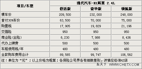 二、现代汽车H-1辉翼 全款购车不足24万