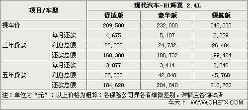 一、现代汽车H-1辉翼 最低首付不足9万