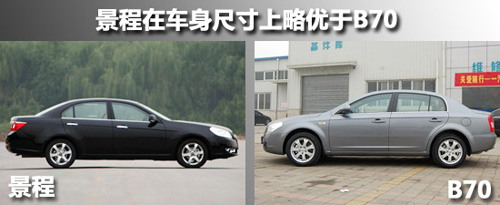 相比较而言,景程的尺寸要稍微大一点,而奔腾B70的尺寸则属于B级车的小个头,与很多A级车尺寸接近。这点上B70并不占优势。车身颜色上,景程有7种颜色(珍珠白,风尚(报价 参数 图片 论坛)红,流光银,幻影(报价 参数 图片 论坛)金,极光(报价 参数 图片 论坛)蓝,晶石黑)可供选择,B70有6种颜色(银珠黑,钛灰,轻舟银,北极白,瀚海蓝,经典红)供挑选。