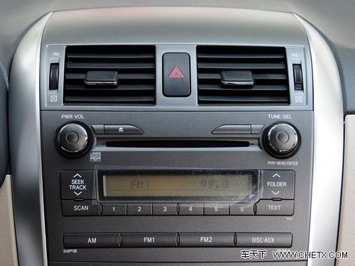 改款卡罗拉的内饰部分变化非常小,方向盘切平的底部和左右握位的造型都是明显的运动化体现。另外同型号车型在仪表盘部分比老款简化,背景光改为了白色。2011款卡罗拉的整个中控台面板都和老款车型完全相同。空调出风口、上下双层的手套箱,这些都原封不动的移植到所谓新车型上。立体感比老款增加不少,同时工艺精细度仍然是日系车那着魔的传统。材质其实很一般,硬梆梆的手感之下是几乎完美的工艺。这种感觉特别诱惑30岁以上消费群体,他们喜欢那种细致的产品,卡罗拉就属于这种诉求的直接产物。
