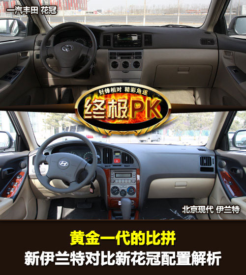 提起花冠(报价 参数 图片 论坛)和伊兰特(报价 参数 图片 论坛),国内消费者应该对其都是如雷贯耳,这两款车既是丰田和现代两家公司旗下的经典车型,也是国内汽车消费市场崛起时异军突起的黄金一代,而且历经数次改款后,这两款骨灰级的车型依然活跃在国内汽车市场上。经过昨天对终极PK两位选手的静态体验后,想必大家对它们已经有了一个初步的认识,今天我们就来看看这两位选手在配置方面会有着一番怎样的较量。