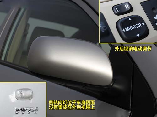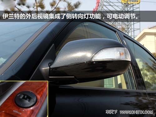 两车的外后视镜功能也比较单一,只有电动后视镜调节这一项。此外,伊兰特的外后视镜集成了侧转向灯功能,增加了车身的美观度,而花冠的侧转向灯则位于车身侧面,没有集成在外后视镜上。