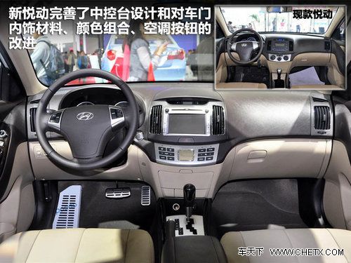 内饰方面,新悦动完善了中控台设计和对车门内饰材料、颜色组合、空调按钮的改进。配置方面,在安全配置上,新悦动增加了前排座侧气囊,而智能钥匙、一键启动功能、超级仪表盘、导航仪、USB接口等配置也为车主提供便利性。